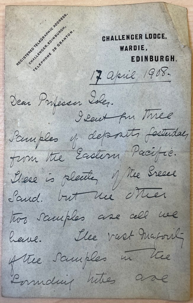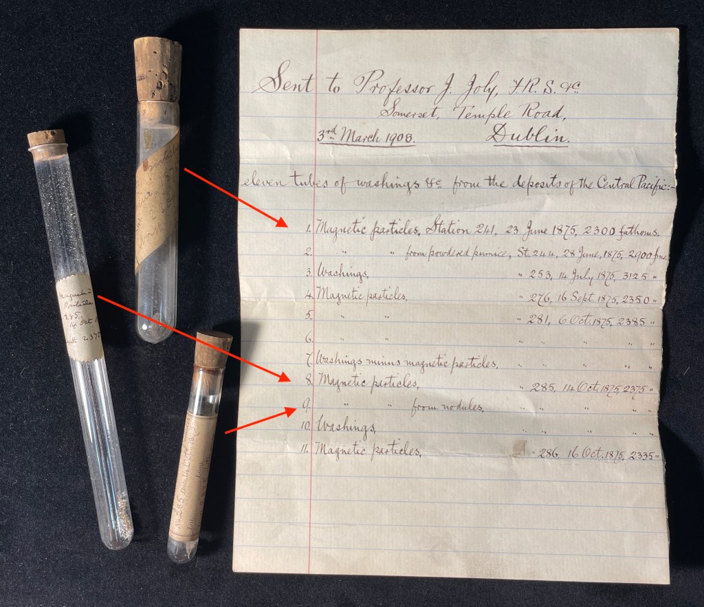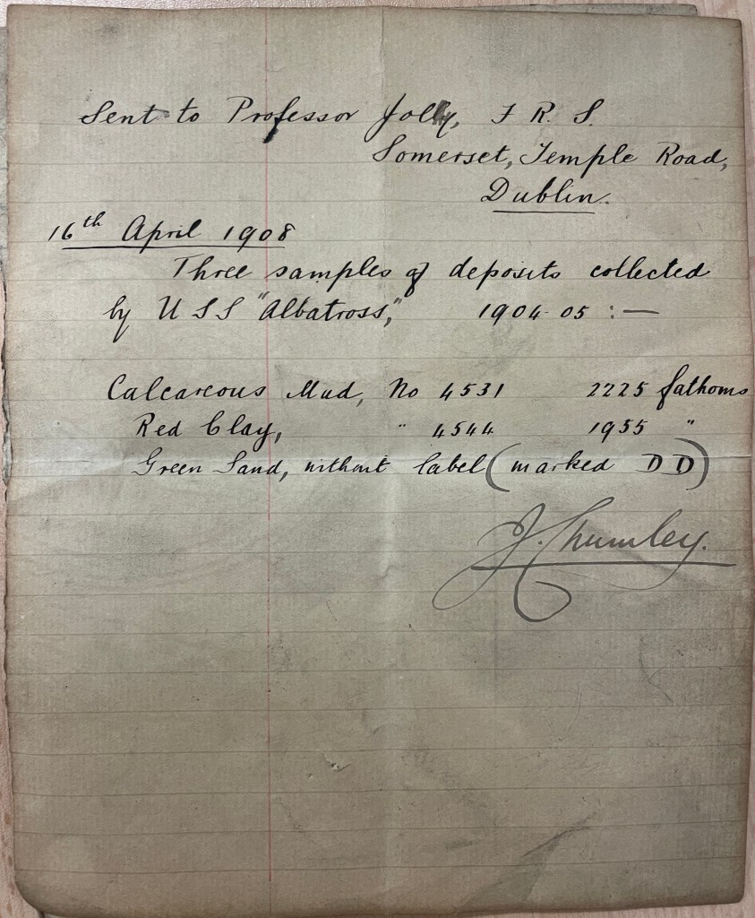 H.M.S. Challenger Specimens sent to Joly 3rd March 1908