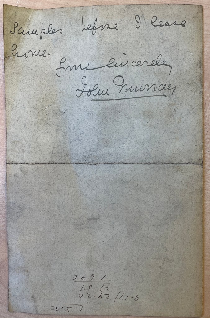 Found in the same drawer as the above, no associated specimens. James Chumley worked with John Murray in the Challenger office in Edinburgh. (See KERR, J. Dr. James Chumley. Nature 163, 124 (1949). https://doi.org/10.1038/163124a0).