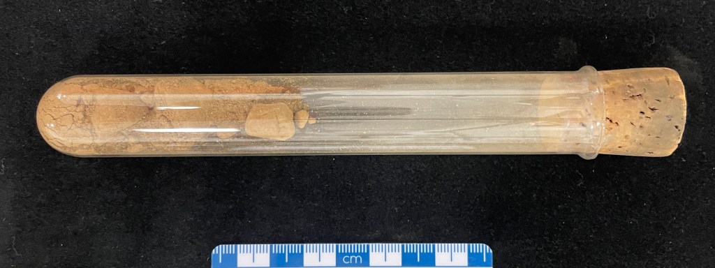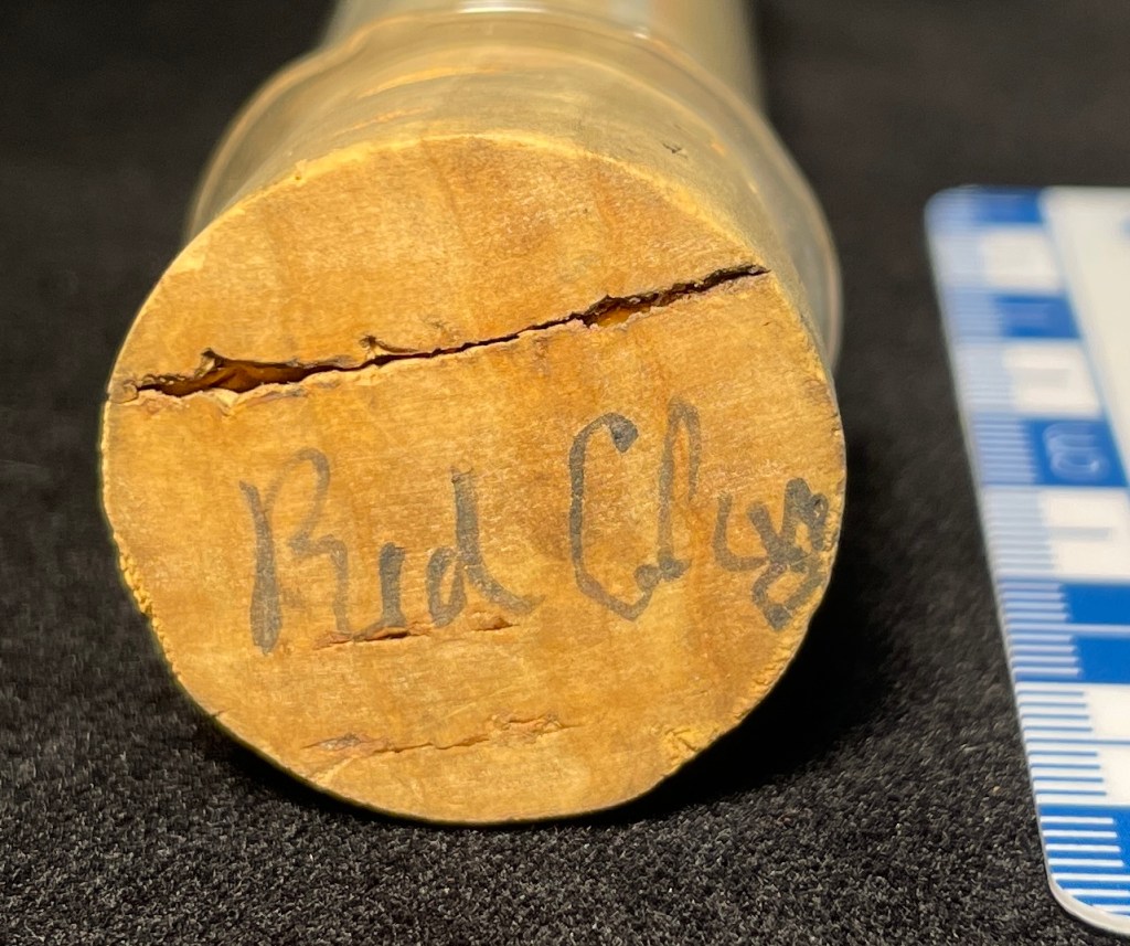 One tube labelled “Red Clay” in the drawer could be related to this letter.