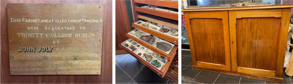 The collection contains few Irish specimens. Represented are some zeolite minerals from the Giant’s Causeway, and some beryl crystals from the granite of the Dublin Mountains, where Joly liked to walk and relax.