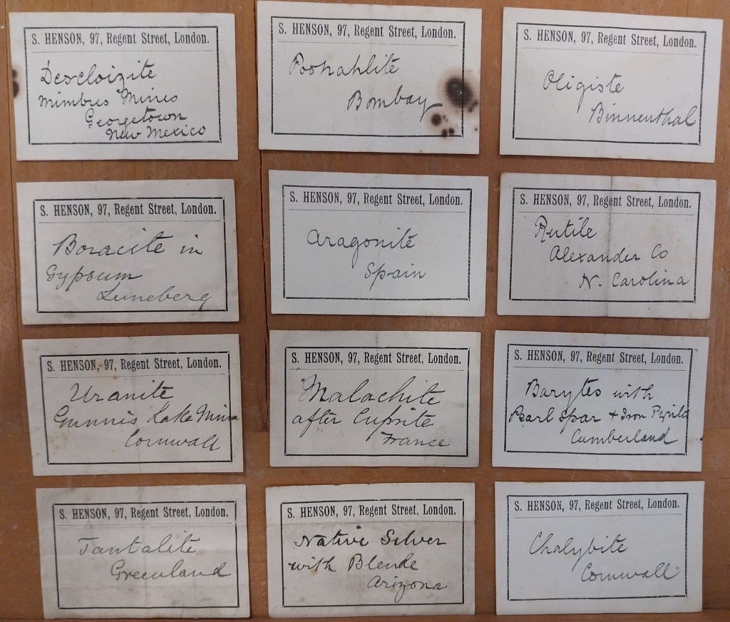 Eighteen of the databased specimens come from Samuel Henson, a mineral dealer from London.